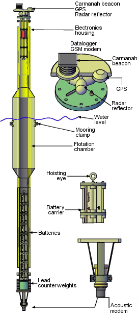 DB II measures oceanographic and meteorological conditions in coastal waters and sends data to a land based server by means of standard cellular or global satellite telemetry.