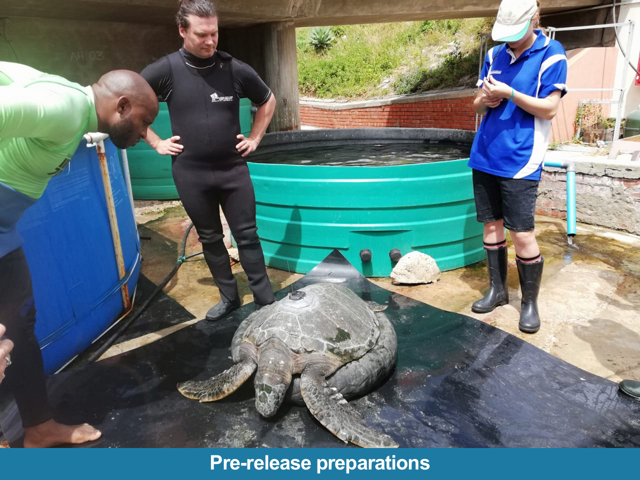 "Cedar" the green turtle has been tagged by Bayworld (PE Museum).